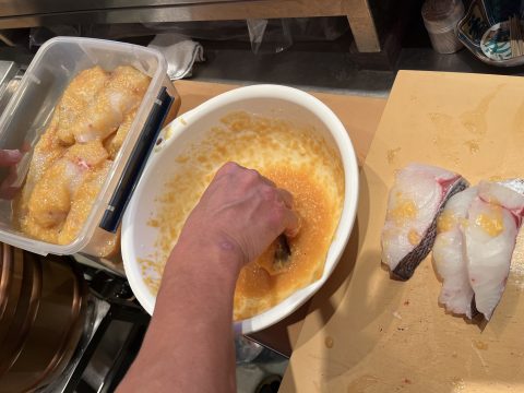 福井県で獲れたメダイ、味噌漬けにしました。焼き魚で食べてみてください。昨日までの天気☀️から一転、明日からは大時化になりそうです。今も時々もの凄い突風が吹きます。道に落ちてる何が飛んで来たりもあるので皆様も外出中はお気を付けください。風が落ち着くと今度は雨☔ですね。北陸独特の冬の天気になっていきます。